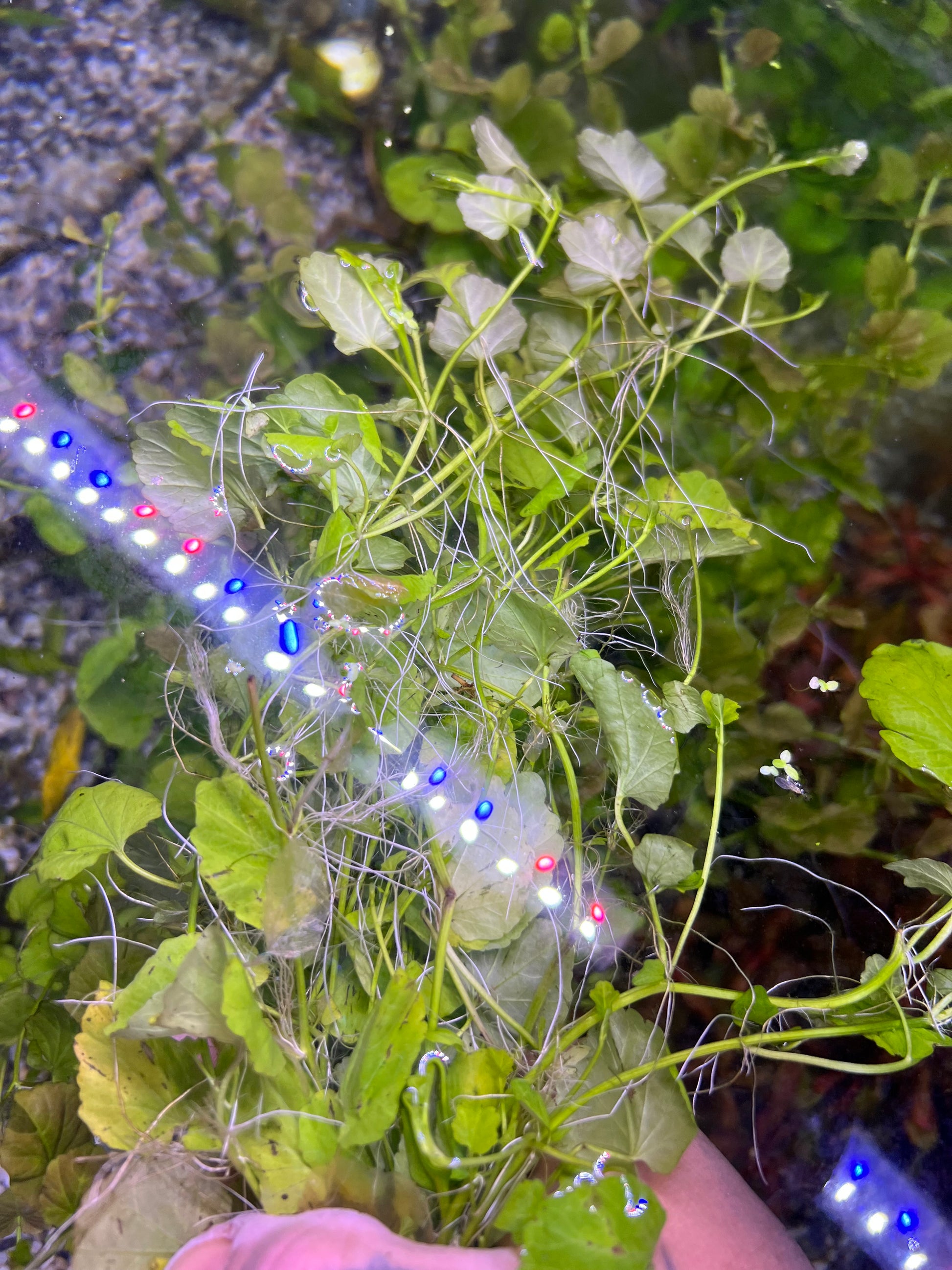 Add a touch of elegance and movement to your aquarium with Cardamine Lyrata. This unique aquatic plant features delicate, round, clover-like leaves on thin, trailing stems, creating a stunning visual effect. It thrives in both submerged and emersed conditions, making it a versatile choice for aquariums, paludariums, and ripariums. Its moderate to fast growth rate makes it an excellent background or midground plant, providing shelter for fish and shrimp while enhancing your aquascape.