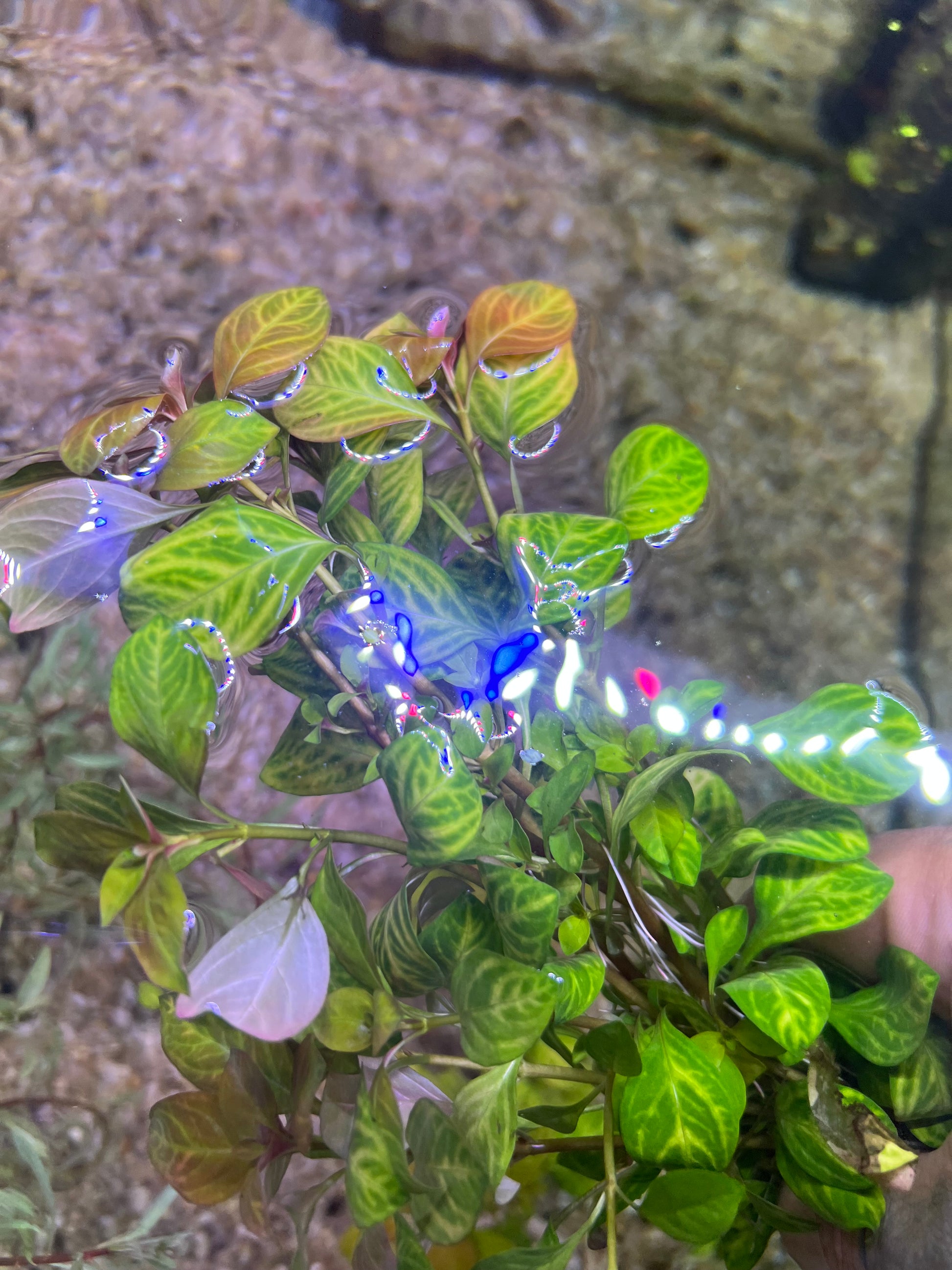 Ludwigia ovalis is a striking aquatic plant known for its rounded leaves and stunning color variations, ranging from green to shades of pink, orange, and red. This versatile stem plant is easy to grow and adapts well to a variety of aquarium conditions, making it a great choice for beginners and experienced aquascapers alike.