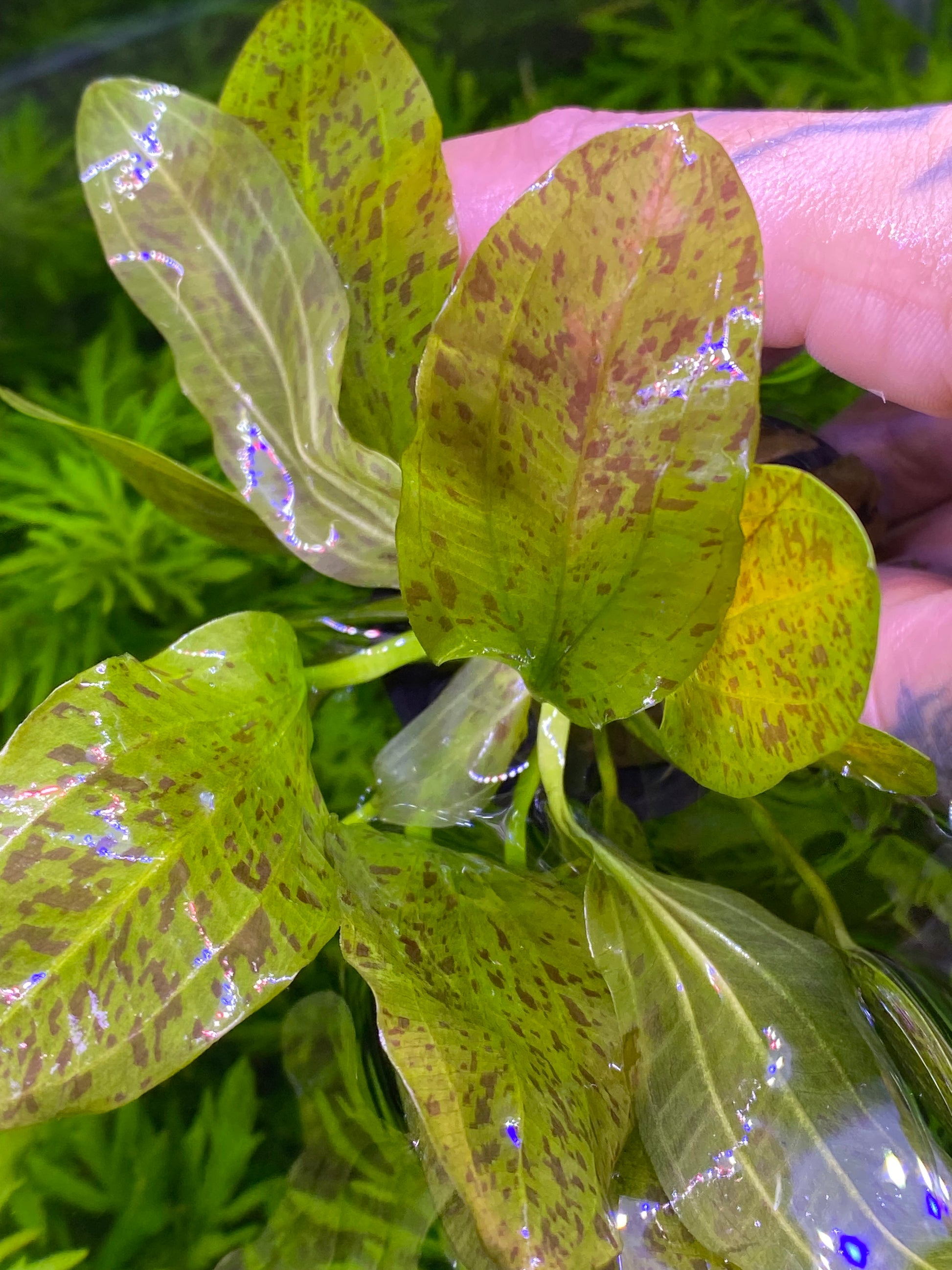 Green Ozelot sword is a magnificent plant for the background of your aquarium. It grows bright green leaves with honey/ brown colored spots which make it stand out from the rest!