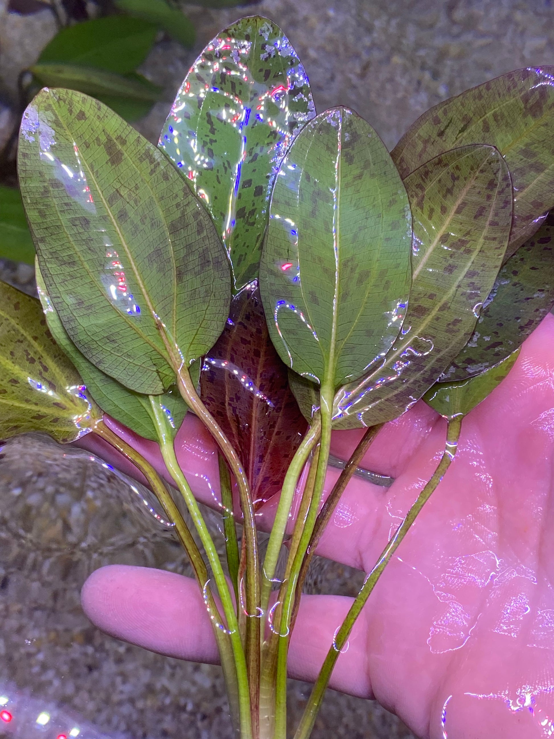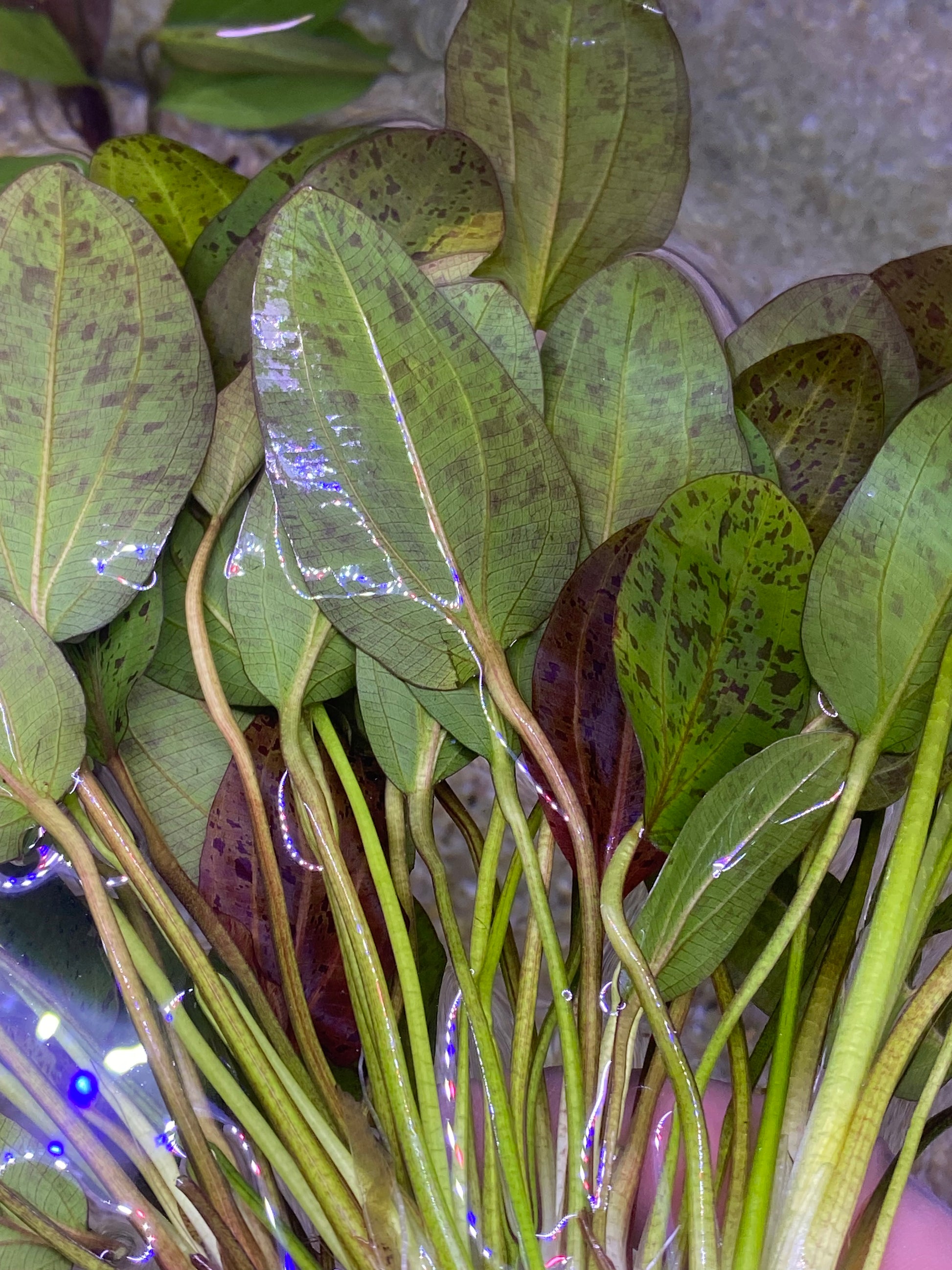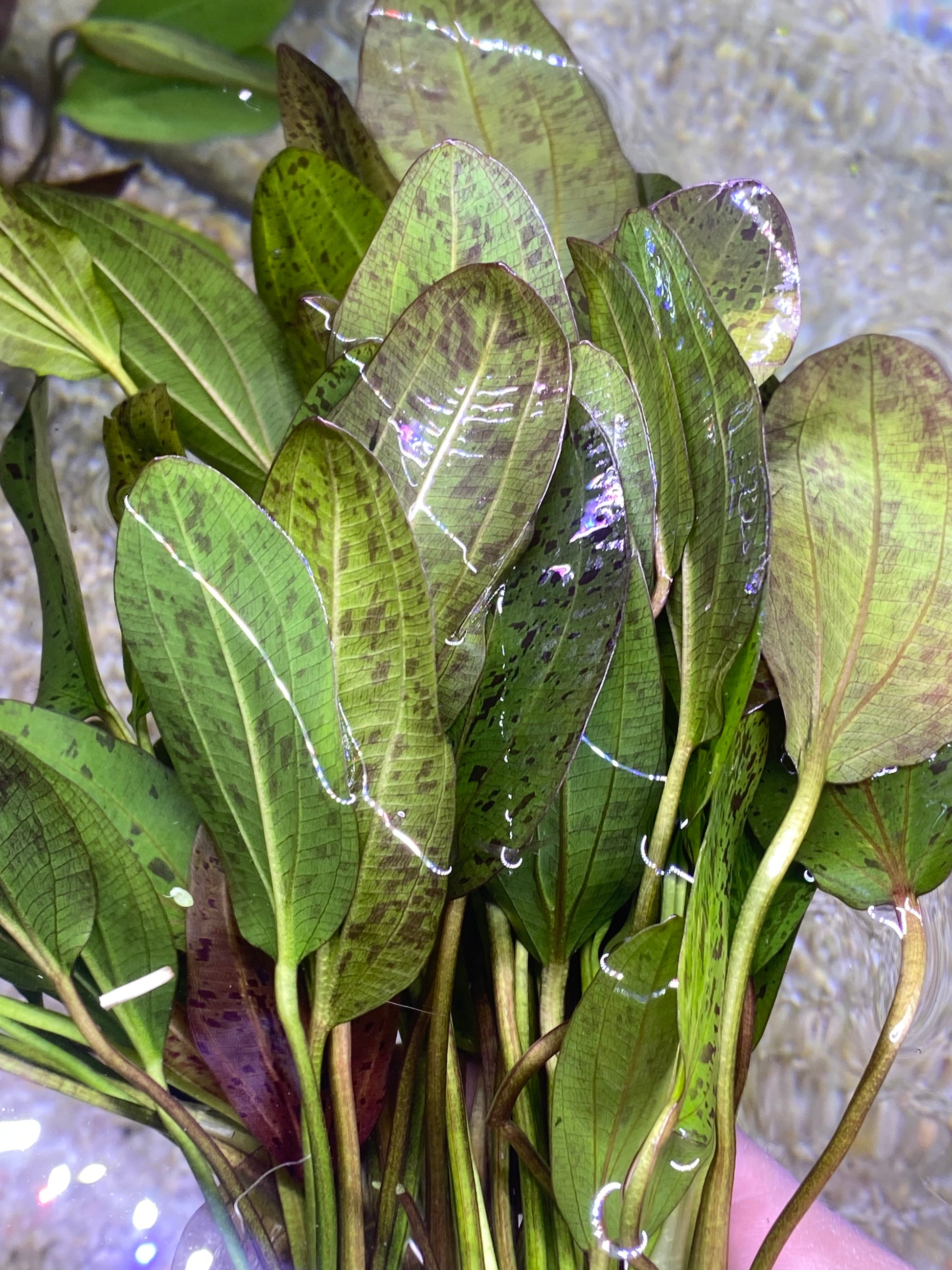Add a pop of vibrant color to your aquarium with the Red Ozelot Sword, a stunning aquatic plant featuring bold, red-spotted leaves. Perfect for creating a dramatic focal point, this hardy and easy-to-care-for plant thrives in a variety of tank conditions.